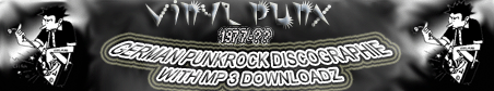 Zur Zeit könnt ihr in 146 LP´s---91 EP/Singels und in 53 Sampler der Jahre 1977 bis 19?? rumwühlen! In der MP3-Sektion gibt´s 74 rare Songs der alten Punkrock-Combos Diese Page dient nur zur Info,ich werde keine dieser Scheiben verticken! NOT FOR SALE!!ONLY FOR INFO!! Die Tin Can Army/Maniacs Split LP wurde in den 80er 2 mal aufgelegt.Hier der Beweis. LAST UPDATE:07.10.02
